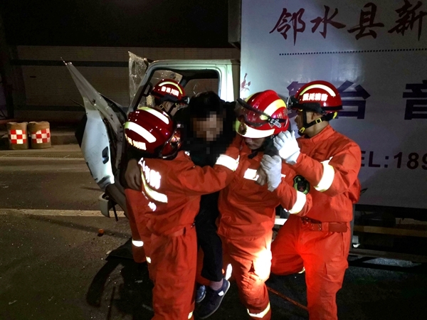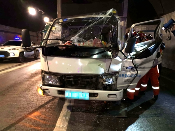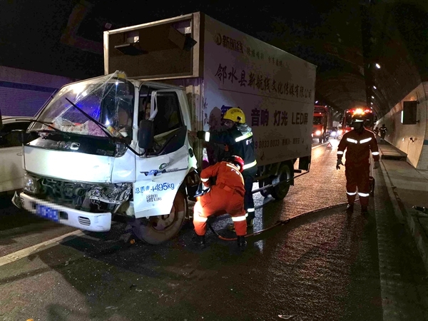四川在线消息(黄应权 记者 陈松)1月18日12时04分,广安华蓥山隧道发生货车追尾,有一人被困。邻水县大队环城路中队接到群众报警后立即赶赴现场处置,并成功将伤者救出。消防在此提醒广大驾驶员:春节将至行车注意安全,家人在等你平安归来。