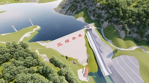 三坝水库工程是全国水利改革发展“十三五”规划项目之一,也是成都拟建的第三水源,位于大邑县岷江支流南河左岸一级支流䢺江河中游河段,坝址以上控制流域面积388平方千米,多年平均径流量4.34亿立方米。三坝水库设计为大Ⅱ型水库,坝高101.5米,正常蓄水位691米,总库容15424万立方米,功能以城乡供水、防洪为主,兼顾灌溉、发电等综合利用,并为改善区域生态环境创造条件。