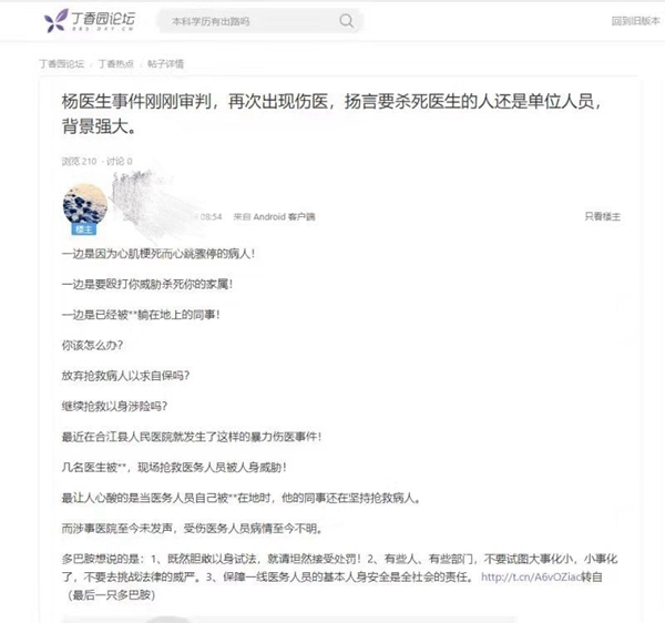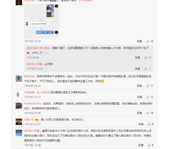 联系到近期多发的几起伤医事件,不少网友留言呼吁:相关部门应为医务者发声!必须严惩暴力伤医事件。