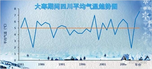 据分析,成都常年大寒节气平均气温为5℃,而2000年至2010年,有7个年份平均气温超过了5℃,在此前的1981年至1999年只有不到一半超过5℃。
