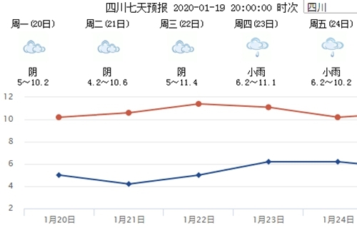 据四川省气象台分析预测,未来5天,“阴天”是主旋律,烘烘太阳不定时造访,全省平均日最高气温在10℃左右。