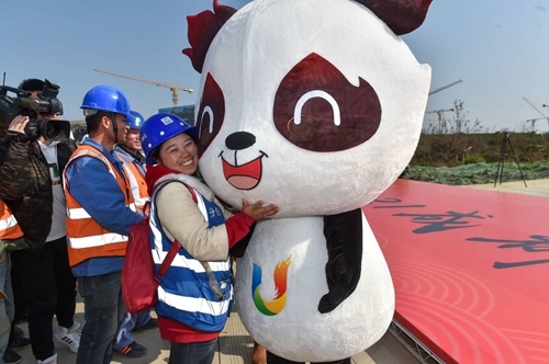 “蓉宝”空降工地,为大运会主体育场的建设者们送祥纳福,这个从天而降的创意,很接地气,难怪大运会工地的“打工者”欣喜若狂。