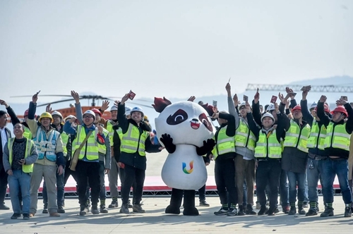 作为大运会开幕式场馆,东安湖体育公园主体育场将成为全世界了解成都大运会的第一个“窗口”。为了给大运会顺利举办交上满意的答卷,临近新春佳节,这里的施工现场仍然是一片如火如荼的建设景象。大部分工程建设者都以饱满的热情坚守在各自的工作岗位上,争分夺秒地奋战第一线。为了给辛勤工作的建设者送上来自大运会的祝福,大运会吉祥物“蓉宝”精心准备好了一份惊喜。“快看!蓉宝竟然乘坐直升飞机来了!”午休期间,三架机身涂装了大运会吉祥物和会徽的红色直升飞机盘旋在东安湖体育公园建设工地上空。随后,其中一架直升飞机缓缓降落在了停车场附近的空地上,深受喜爱的大运吉祥物“蓉宝”带着满满的礼物走了出来。很多原本正在休息的建设者们闻讯而来,欣喜若狂。纷纷围着蓉宝拍照合影。而蓉宝则为每一位建设者都送上了一个大运“福袋”,其中就有刚刚发行的大运主题即开型彩票。这种大运会彩票以手绘版的蓉宝为主角,设计了六款分别对应“三城三都”主题的创意形象,最高奖金额高达10万元。蓉宝以送大运彩票的形式送祝福,祝愿奋战在一线的建设者们“新春行大运,新年好彩头”。