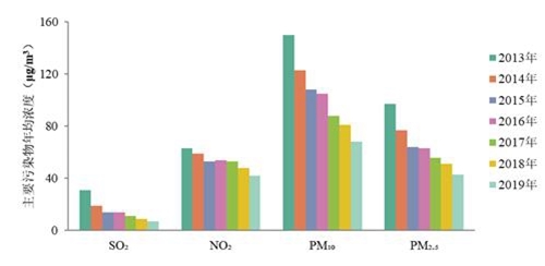 2013-2019年成都市主要污染物浓度变化趋势图