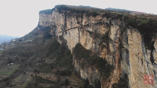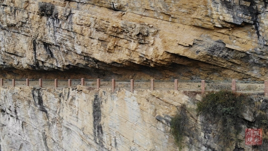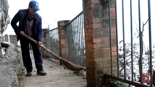 如今四十余年过去,岔河人每天仍在使用引水渠灌溉着李子树和柑橘树,而后又给大堰加固了围栏,使之更加安全。岔河村民姜阳俊每天都会在这条通往水潦集市的必经之路上清扫,将被风吹乱的树叶扫到一边,这份绝壁清道夫的工作他已经做了很多年,他说:“我以前怕这个大堰,现在敬这个大堰。”