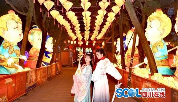 四川在线消息(记者 吴晓铃 摄影 衡昌辉)1月21日晚,伴随着夜幕降临,成都武侯祠博物馆耗时两个多月精心准备的十余组大型彩灯和上万盏精致宫灯同时点亮,成都武侯祠博物馆,华灯闪烁,流光溢彩。这是备受公众期待的“2020武侯祠成都大庙会”全面试灯。23日晚8点,大庙会将热闹开启,以精彩的活动伴随市民度过鼠年春节。