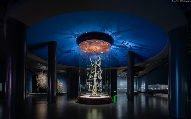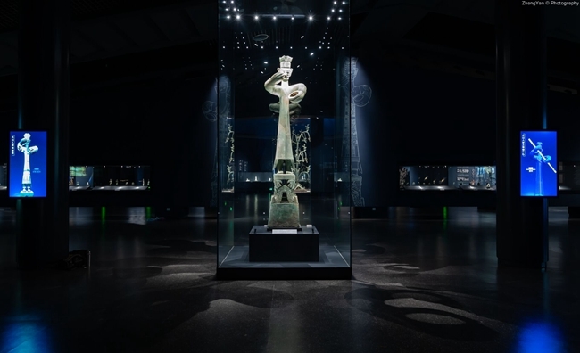 全馆空间规划张弛有度,陈列主色彩采用蓝灰色调,营造畅通大气的观展场域,通过重量级文物打造展览中轴线,表现三星堆文化“人与神”的主题,凸显青铜铸就的“神性”光辉。改陈后的综合馆通过定制化图版、展柜、展具设计,精工细作,提升展览品质,彰显出世界级展示水平。