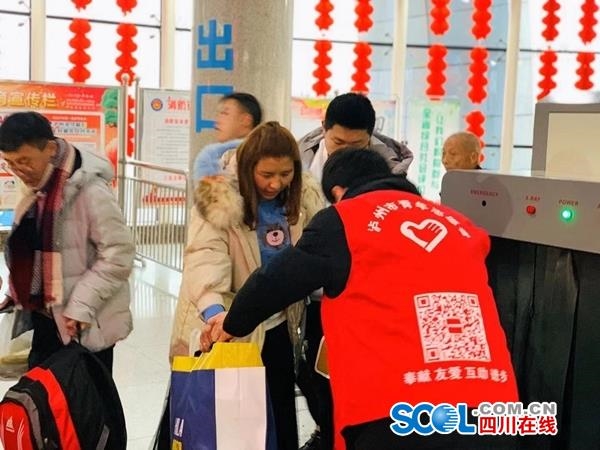 热心帮助乘客取票是“青春志愿·爱在旅途”泸州市2020年青年志愿服务春运暖冬行动之一。在2020年服务春运工作中共青团泸州市委,聚焦对农民工的关爱,以“小桂花”志愿服务品牌为引领,联合市文明办、市人社局、市卫健委、市文联、市运管局等部门,重点围绕泸州客运中心站、云龙机场等重点客运中心设立春运志愿服务站点,发动7个区县各客运车站同步启动春运志愿服务工作。