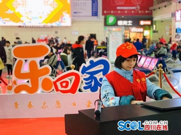 一架钢琴、一名“小桂花”志愿者、一首悠美的钢琴曲映衬着周围来来往往的旅客,这就是“青春志愿·爱在旅途”泸州市2020年青年志愿服务春运暖冬行动打造的“乐回家”剧场。