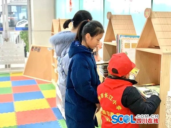“你看这本书,里面全都是童话故事,我自己都看了一遍了,你们可以放在桌子上读”,在泸州客运站的一个转角处,一名“小桂花”志愿者正在给两个进来看书的小旅客“安利”童话故事书。