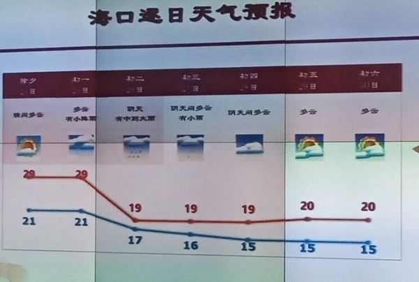 假期前期,海南晴朗温暖;中期转阴雨天气,气温明显下降,天气转凉;后期天气转多云,早晚寒凉。