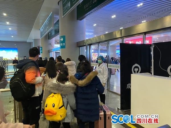 记者了解到,车站根据实际,对武汉始发或途经的列车采取相对固定到达站台接车、固定通道出站,并按照地方政府的工作安排,分别在成都站和成都东站安设了两台红外线智能体温检测系统,有计划地在车站配备手持测温仪,对所有武汉方向到达的旅客进行体温检测;并设置了隔离室,由防疫部门人员值守,一旦发现异常情况,就地进行隔离,并报告当地卫生健康部门。