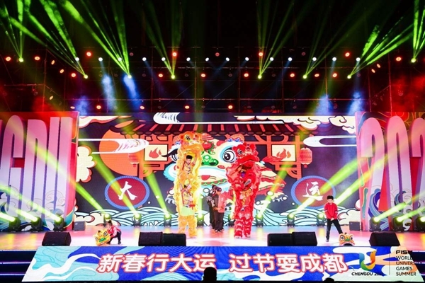 当晚活动现场还进行了开启新春“大运之门”等精彩环节。而在发布会场外配套活动依然精彩:大运会新春主题广告同步登上纽约时代广场大屏;春熙路、宽窄巷子、人民南路等各大地标为大运点亮;“夜游锦江”大运会主题光彩秀同步上演。