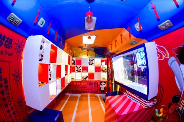 主办方告诉记者,大运主题巴士,是把大运会LOGO、吉祥物、特许经营产品以移动车的形式,向成都市民进行呈现。新春期间,大运主题巴士将来到成都的各个标志性地标和景点,包括武侯祠、金沙博物馆、宽窄巷子、熊猫基地等地。值得一提的是,大运“蓉宝”护照是把大运彩票和成都的美食、景点、路线结合起来向全球游客进行推广的一种创新玩法。