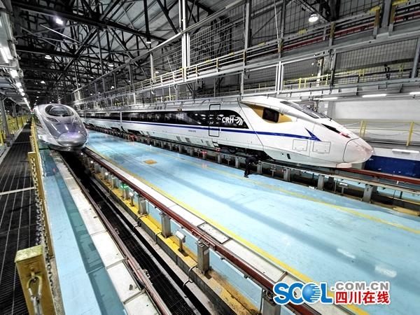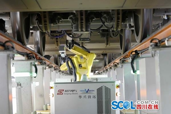 四川在线消息(周兵 黄文韬 记者 王眉灵)除夕将至,铁路出行客流一波高过一波。为满足春运客流高峰用车需求,中国铁路成都局集团有限公司成都动车段投入3台“智能机器人”配合铁路工作人员对动车进行检修,提升动车使用效率。