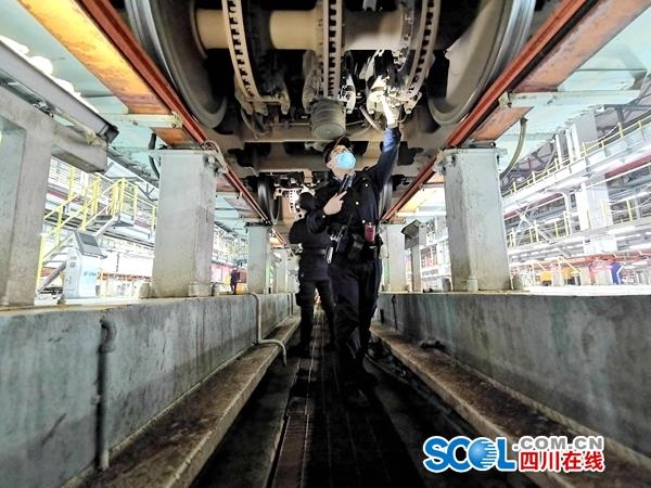 为满足春运高峰用车修,成都动车段提前调整修程修制,优化生产组织,深挖检修能力,提升动车检修质量。同时,还投入了3台智能机器人与运用车间铁路工作人员一起,对动车进行“体检”,将动车一级修人工技检周期从原有的48小时延长至96小时,在保证质量的前提下,全力提升所配属132列动车的运用效率。