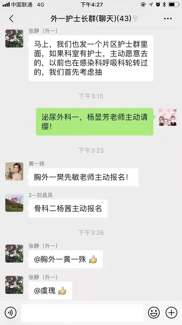 1月22日,四川省人民医院被确定为全省新型冠状病毒感染肺炎定点救治医院之一。在医院里,感染科、骨科、急救中心、泌尿外科等几乎所有的科室的众多医护人员纷纷请缨,表示一旦需要自愿前往一线。