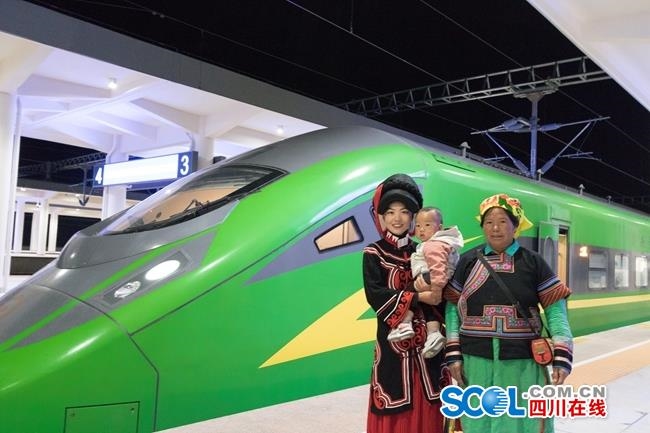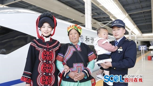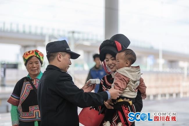 1月21日早上,妻子贾澌阿露特意穿上了结婚那天的盛装,带着阿妈和儿子来到攀枝花南站。