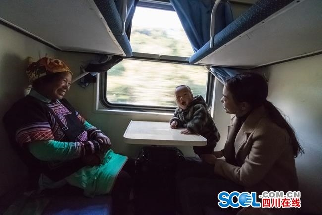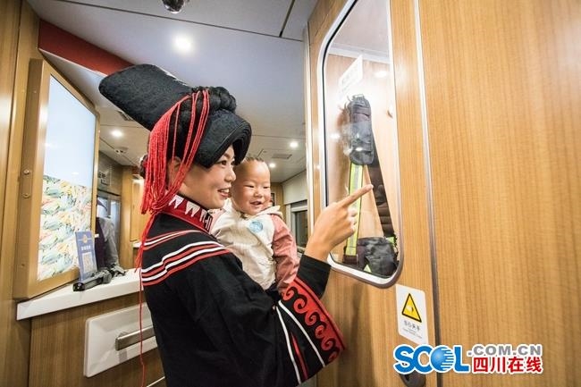 看着眼前这个和平时不大一样的火车,阿妈眼里满是兴奋,让儿媳多给她拍几张照片带回家给家人看,2个小时的车程里,儿子李胤凯和阿妈眼里装满了新鲜的景象。