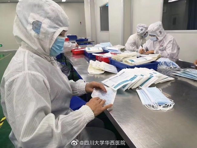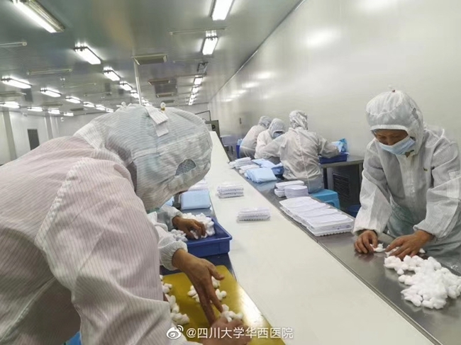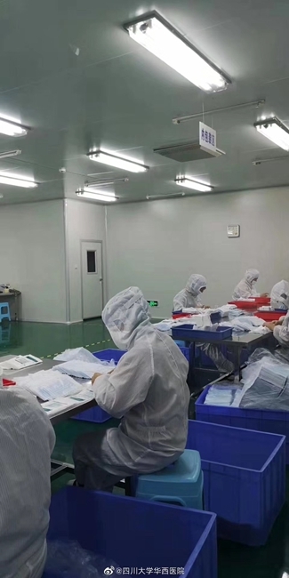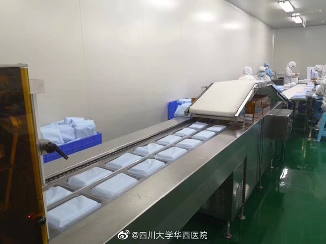 四川在线消息(记者 李寰)记者从华西医院获悉,该医院下属口罩生产企业取消休假全面开工,26日可产出20万只医用口罩,以政府调配使用为。据介绍,为了尽量保证医用口罩的供应,助力抗击新型肺炎,华西医院全资利康公司下属的口罩生产企业紧急取消春节休假,已返家过节的员工们接到通知后很快陆续返回公司,于1月23日开工恢复了医用口罩的正常生产。1月26日前该企业能生产20万只医用口罩,供政府统一调配使用。(图片由医院提供)