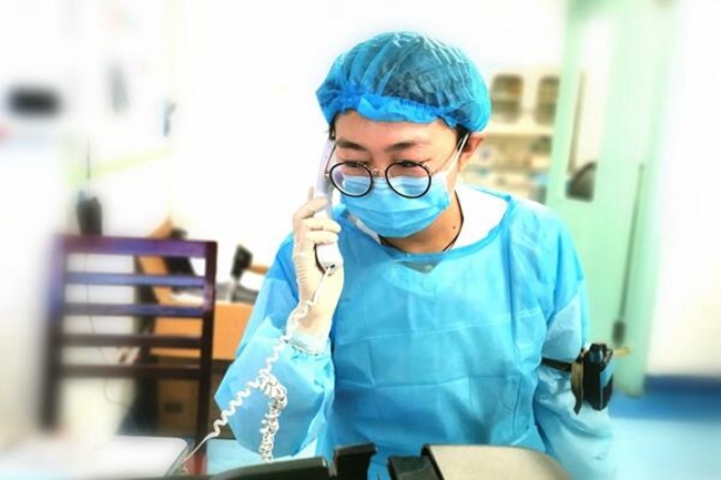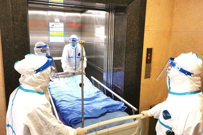 电梯打开,应急小队一名医师及一名护士马上接手,对患者进行查看并与送诊医师简单交接病情,确认患者安全后对讲机通知辅助小队撤离,并护送患者直接进入隔离病房。