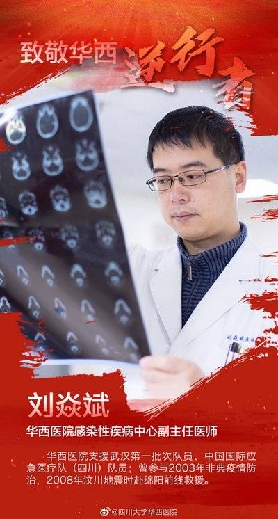 华西医院感染科医生刘焱斌将第一批启程赴武汉支援。这两天,他一直在病房里值守。23日,刘焱斌瞒着家人报名参加了援助任务。“我是感染科医生,我有抗击非典的经验,这时候,就是我们感染科医生发挥作用的时候!”