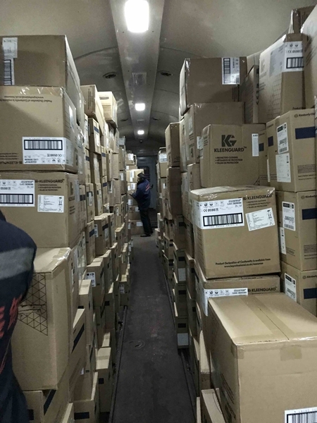 7时11分,由上海南发往成都的1879件7926公斤防护服、手套、洗手液等防疫物资全部卸车完毕,后续将由京东快速配送到急需这些物资的各个地区。