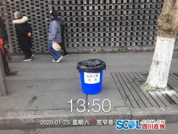四川在线消息(记者 张红霞)1月25日,大年初一,成都市青羊区少城街道行动起来。截至下午18时,在辖区共设置废弃口罩及废弃防护用品专门垃圾收集容器420个。