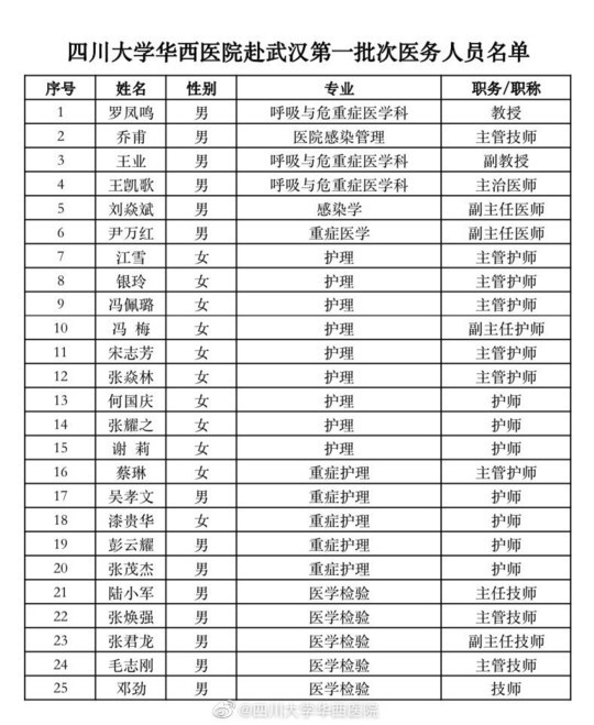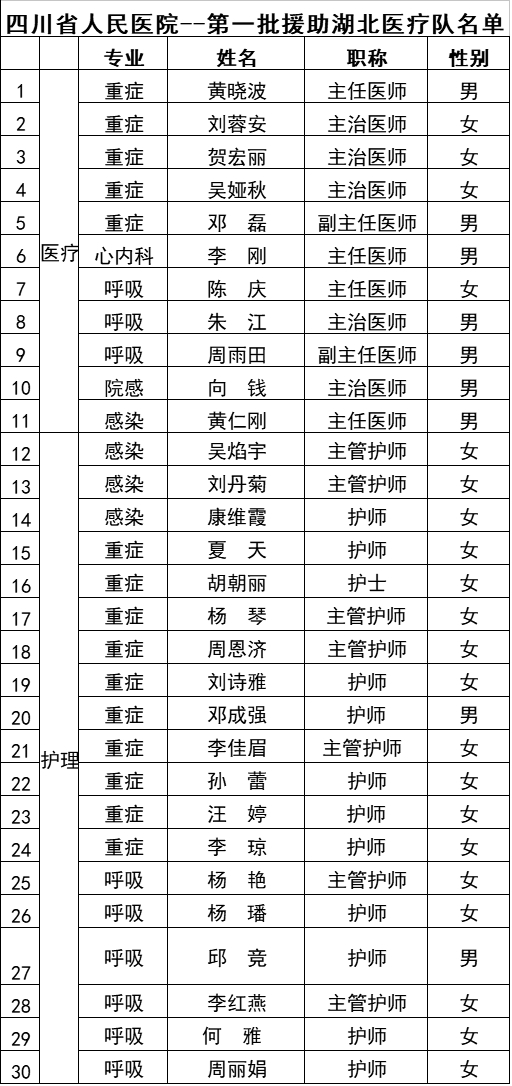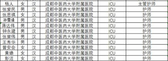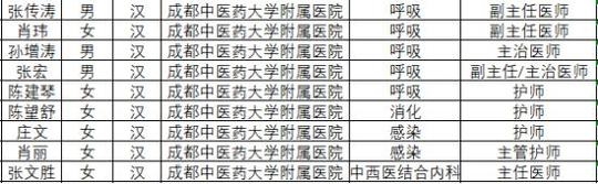 这138名医师和护理人员,分别来自四川大学华西医院、四川省人民医院、四川省第四人民医院、西南医科大学附属医院、川北医学院附属医院、成都医学院第一附属医院、成都中医药大学附属医院、四川省第二中医医院、西南医科大学附属中医医院等医疗单位。
