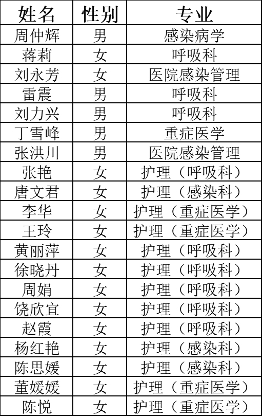 感染科副教授邹永胜、副主任医师李强、主管护师钟起燕、护师黄桂芳、护士杨梅;