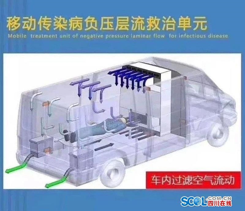 据悉,负压舱内负压空气净化空调采用流体力学的设计原则,通过高效空气过滤器的平衡气流压力,使负压舱内形成一个固定的空气流场区域,空气由清洁区(医务人员区)流向感染源区(病人区),负压舱内的空气压力在-10Pa~-120Pa之间,使得空气流的死角和漩涡流最小。