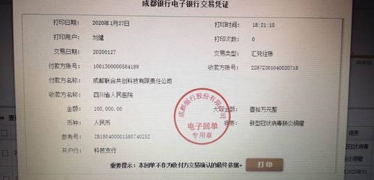 “干脆捐钱吧,医院统一购买说不定效率更高。”1月27日下午,他以公司名义向四川省人民医院捐款10万元,用于统一购买符合标准的防护物资。