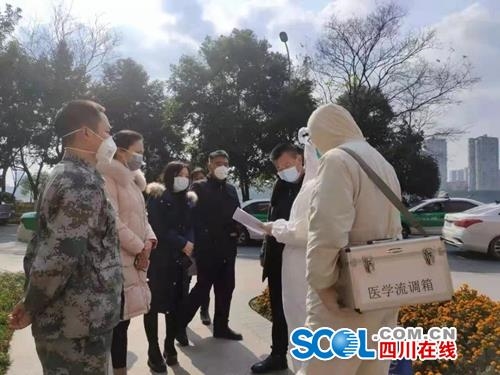 乐山市市中区退役军人配合医务人员开展武汉返乡人员医学流调工作。
