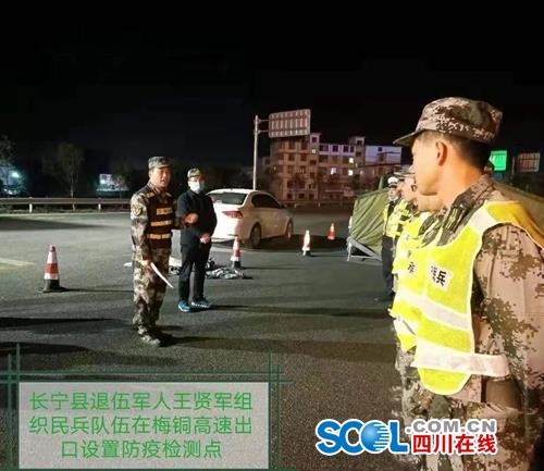 达州市退役军人杨成、徐雄烽等人在达州南高速路口参与设卡检查新型冠状病毒感染的肺炎疫情检查。