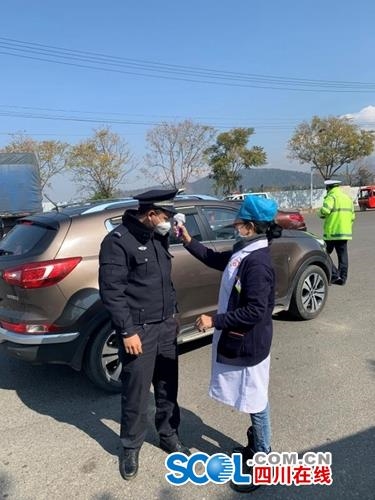 四川在线消息(沈智 记者 何勤华 文/图)“你好,请接受检查……”1月28日下午,在京昆高速西昌北出入口,西昌市公安局辅警罗克和同事在引导车辆接收检查。待车辆挺稳车窗遥下,医护人员则亚梅立即为车内人员测量体温。