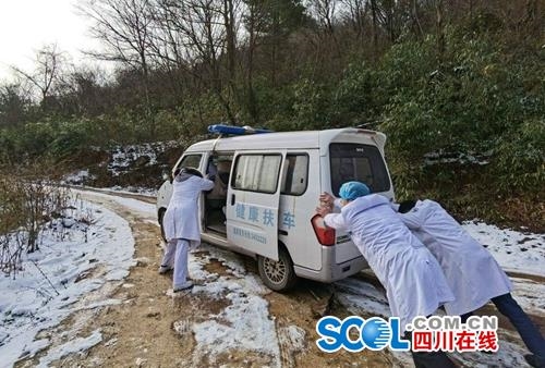 “今天道路好多了!昨天下大雪,我们走了好几个小时的路!”由于大雪初化,离城区仅25公里的石笋村,不仅道路崎岖,而且时不时就遇到暗冰,车辆打滑,大家就下车推车,而车辆不能前往的地方,他们就徒步前行,每个人的鞋上、裤子、防护服都沾满泥浆。