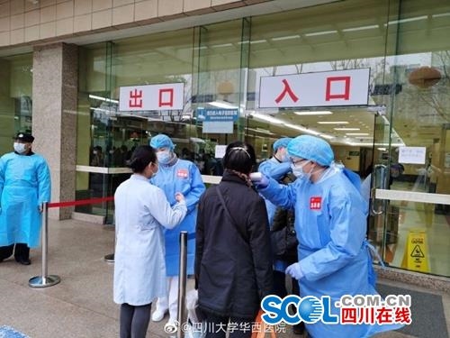 四川在线消息(记者 李寰)1月28日(初四)早上8点,四川大学华西医院开诊,前来门诊就诊的患者发现,门诊大厅门口连夜竖立了几个临时通道,戴着口罩穿着隔离衣的医务人员正在给进入大厅的每一个患者和家属测量体温。而看完病拿了药的患者发现,从门诊大厅门口不能原路返回,必须从另外的通道走出门诊大厅。整个机制运行良好,门诊秩序井然,同时医务人员和患者都觉得,就诊时疫情防控安全更有保障。