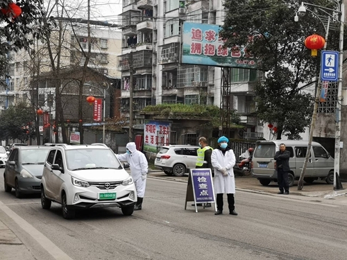 四川在线消息(记者 袁城霖)1月28日中午1时许,在达州市达川区石板街道石板社区的(原石板镇场镇)210国道线上,一块标识“检查点”的路牌立在马路中间。有车辆通过,交警比出停车的“K”型手势,两位医务人员随即上前,对乘客检测体温,“体温正常,请通行。”