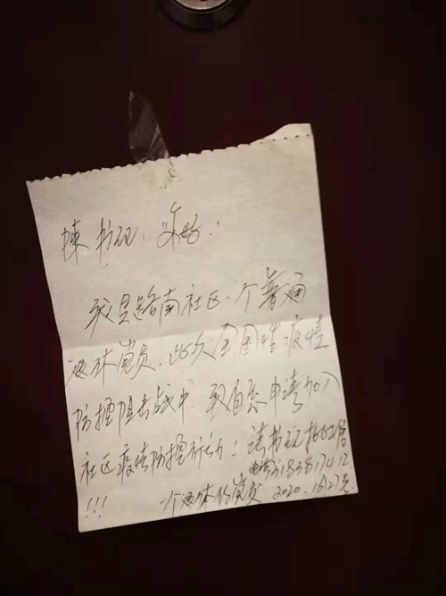 “我是路南社区一个普通退休党员,此次全国性疫情防控阻击战中,我自愿申请加入社区疫情防控行动!请批准。”1月28日,成都市锦江区,牛市口街道水碾河路南社区办公室门上,收到了一封来自社区退休老党员的“请战信”。
