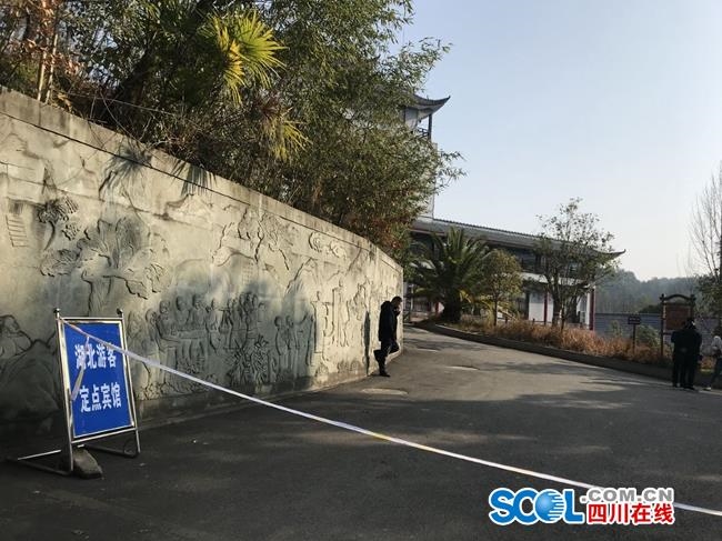 川北民俗文化园是此次广元市确定的湖北游客定点宾馆之一,1月29日,记者在川北民俗文化园看到,酒店门口有清楚的“湖北游客定点宾馆”标牌,2位戴着口罩的保安负责在门口劝返其他游客。院内有10多位带着工作证的工作人员在执勤,对记者也进行了询问。