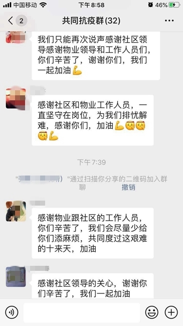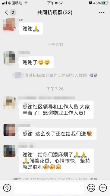 三河街道花园社区还专为接受临时居家观察人员家庭组建微信群,社区干部、民警、医生都在群内,为他们及时解决困难问题,鼓励疏导心理,消除紧张情绪。1月28日、29日,社区党员连续两日为他们送来水饺和鲜花。