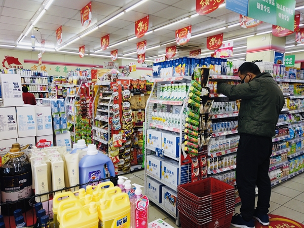 上午9时,武侯区十七街红旗连锁超市里,王军华购买了一箱“金典牛奶”。“牛奶喝完了所以来采购。家里东西都不缺,用完了再来买。”他说。