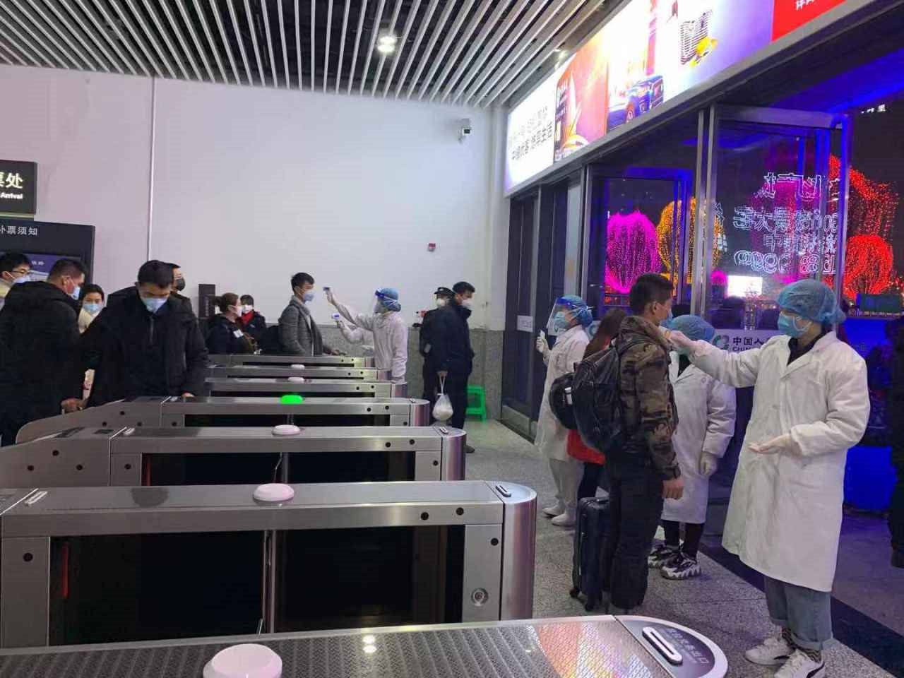 四川在线消息(记者 王眉灵)1月30日,内江高铁北站,李显兰和同事值守在出口处,对每一位到达旅客进行体温检测。除了担任内江北站出入口防控疫情应急值守筛查人员大组长外,李显兰还有个身份:内江高铁北站临时党支部党员。