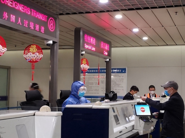 同时,进一步强化与省市卫生健康、疾控、公安、海关、机场、航空公司等单位的协调配合,及时通报出入境人员和航班信息,形成口岸防控工作合力,并在口岸出入境大厅边检LED大屏幕24小时不间断滚动播放疫情防护科普短片。
