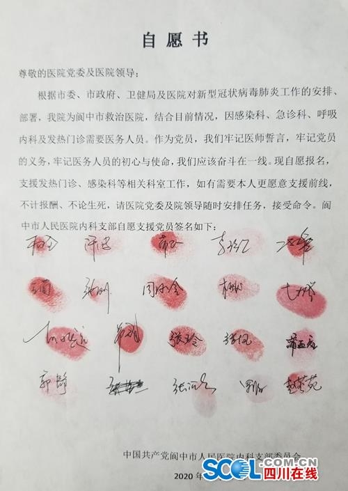 阆中市人民医院内科党支部19名医生党员主动要求抗击疫情的请愿书