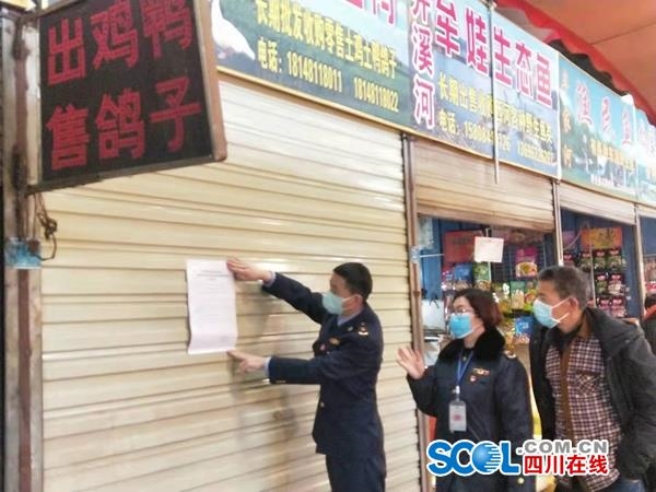 阆中市监局工作人员全面关闭农贸市场活禽宰杀点