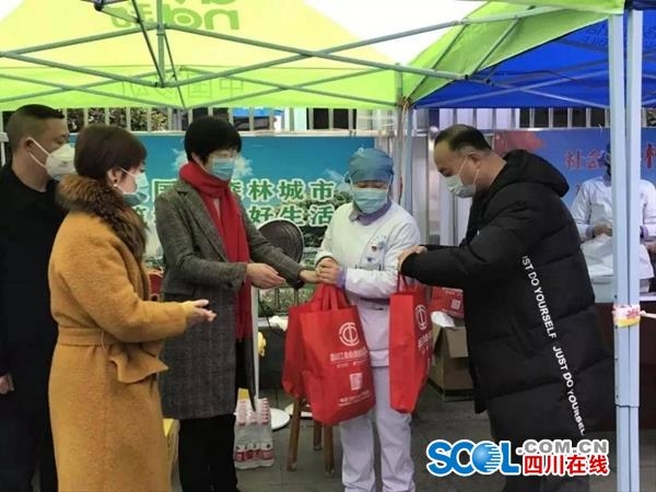 成都市总工会相关负责人和职工志愿者,来到成都市疾病控制中心,同奋战在一线的医务人员座谈。日前,成都市双流区总工会慰问组为一线医务人员送去了价值近5万元的慰问品。