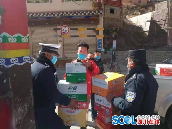 1月31日,乡城县桑批岭寺僧侣代表为坚守在各卡点的民辅警送来水果及饮料;稻城县顺兴隆商店老板马志良自己开着车,为执勤干警和医护人员送来毛毯;稻城县桑堆片区党员们自发筹集木柴,为防控卡点的医护人员和执勤民警送去爱心;德格县热心群众杨先生自掏腰包购买方便面、矿泉水、火腿肠等食物,送到疫情防控一线最美逆行者手中。
