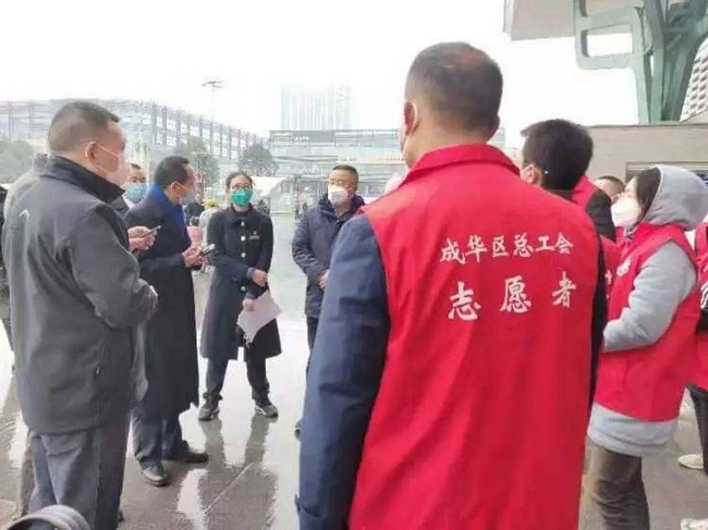四川在线消息(记者 郝勇)“春节假期快结束了,返城务工人员逐渐增多,一场疫情防控战已经打响。”为保障疫情防控重点区域工作力量,成都市成华区总工会组织志职工愿者参加成都东客站疫情防控工作,从1月28日起,该区总工会每天分设2班,对成都东客站旅客等重点防控点位人员进行引导、分流和体温监测等工作。