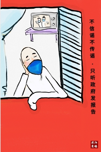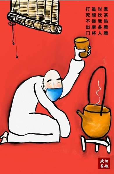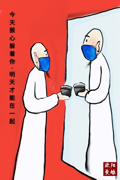 当这张作品发布在朋友圈里,立即引起了董福林的关注。这对趣味相投的朋友一合计,决定推出一组抗疫漫画,在向大众普及防疫知识的同时,也展现出川人“宅”在家中的趣味事和乐观精神,同时感恩并致敬奋战在疫情一线的白衣天使。从大年初一开始,用时4天创作了20余张主题图,他们最终选用了其中12张组成这一系列,表现了川人积极的生活态度和感恩战疫一线工作人员的心意。“希望能给宅在家中的朋友带去一点乐趣,发现宅生活中的诗意趣味。”欧阳曼娘说。